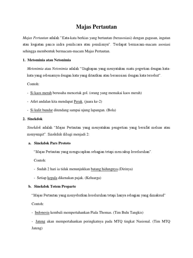 Totem pro parte gaya bahasa yang menggunakan keseluruhan untuk. Berikut jenis-jenis majas pertautan yahg dikutip dari buku Supertrik Kisi-kisi UN SMAMA IPS 2017 oleh Tim Sigme 2016. Yuk simak pembahasan di bawah ini.